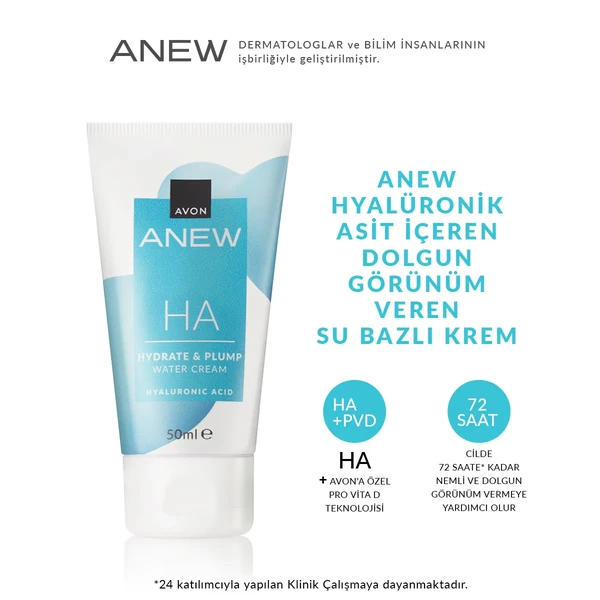 Avon Anew Hyaluronic Acid Water Cream 50ml – Plump & Moisturize is a premium skincare product designed to enhance skin hydration and appearance. This water-based cream features hyaluronic acid, a powerful ingredient known for its ability to attract and retain moisture. With its lightweight texture, this product offers visible plumpness to the skin, making it an essential addition to any skincare routine focused on hydration and moisture retention.