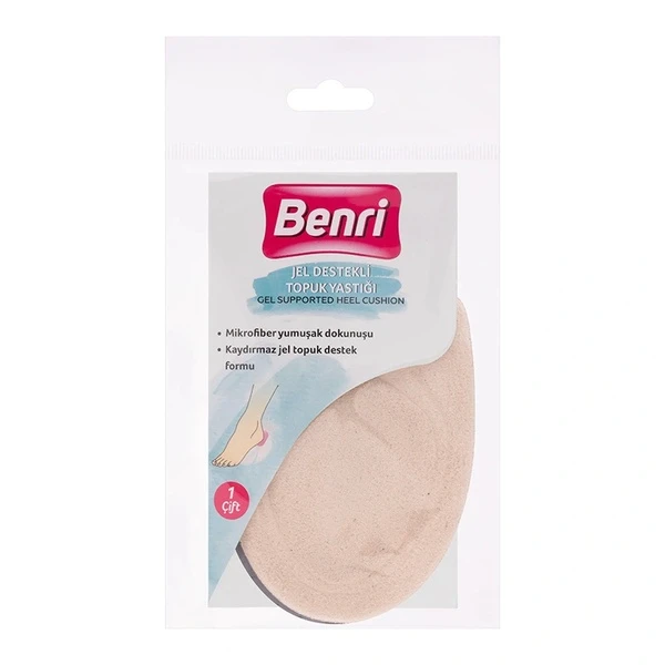 The Benri Gel Heel Cushion is designed to provide exceptional comfort and support for your feet. This product features a soft microfiber fabric combined with a gel layer, ensuring a lightweight experience throughout its use. This heel cushion is ideal for anyone seeking relief from pressure on the heel area, making it a practical choice for daily wear in various types of footwear.