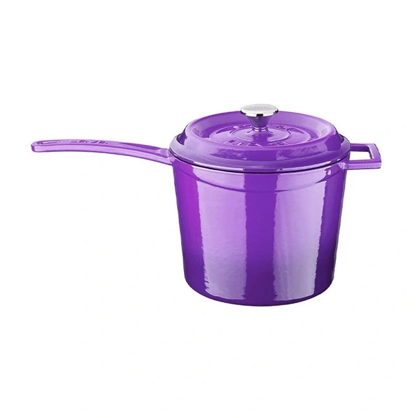 This saucepan can be used on both stovetops and in ovens, offering flexibility in cooking methods. Whether simmering sauces or baking casseroles, the Lava Purple Cast Iron Round Saucepan accommodates various recipes, making it suitable for everyday cooking as well as special occasions.