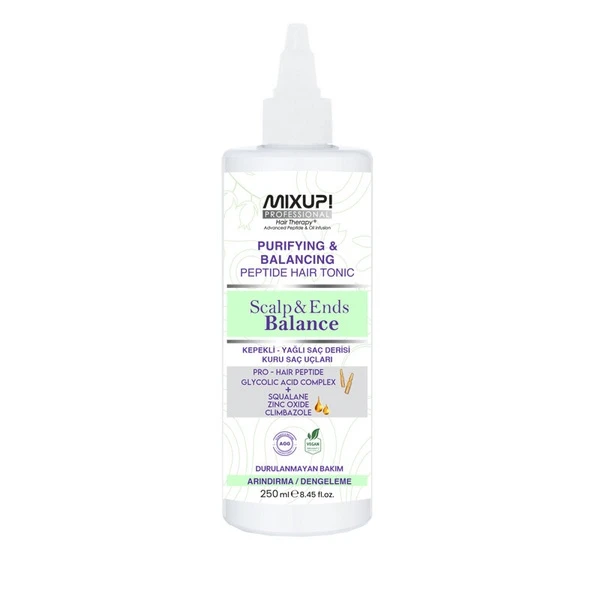 Mixup Peptide Hair Tonic for Scalp & Ends Balance 250ml is a carefully formulated tonic designed to promote a well-balanced scalp and healthy hair ends. This product ensures that both the scalp and hair receive essential nourishment, promoting overall hair vitality. It is an ideal solution for individuals seeking to maintain the health of their hair and address common concerns related to scalp imbalances and damaged ends.