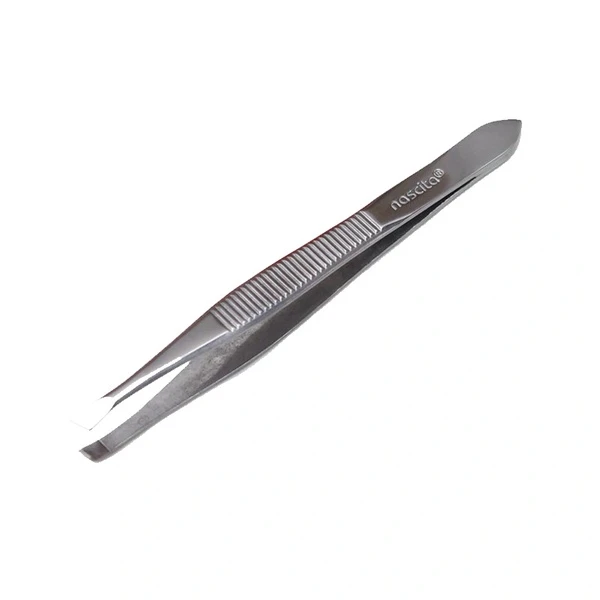 Nascita Chrome Stainless Steel Side Tweezers for Eyebrows & Hair are designed for professional use, crafted from durable stainless steel. These tweezers are essential for precision grooming, effectively removing eyebrows and unwanted hair while also being suitable for applying false eyelashes. Their strong grip and fine tips enable easy handling of both long and stubborn hairs, making them a valuable tool in any beauty regimen.