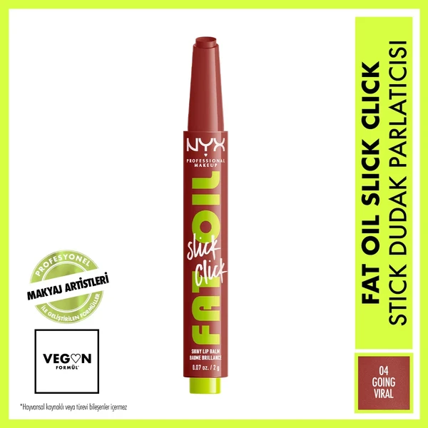NYX Fat Oil Slick Lip Balm 04 Going Viral – 12HR Moisture & Shine is a versatile lip product designed to moisturize, color, and add shine to the lips. This lip balm provides long-lasting hydration for up to 12 hours, making it an essential addition to your makeup routine. It effortlessly combines the benefits of a balm and a gloss, ensuring your lips look vibrant and feel comfortable throughout the day.