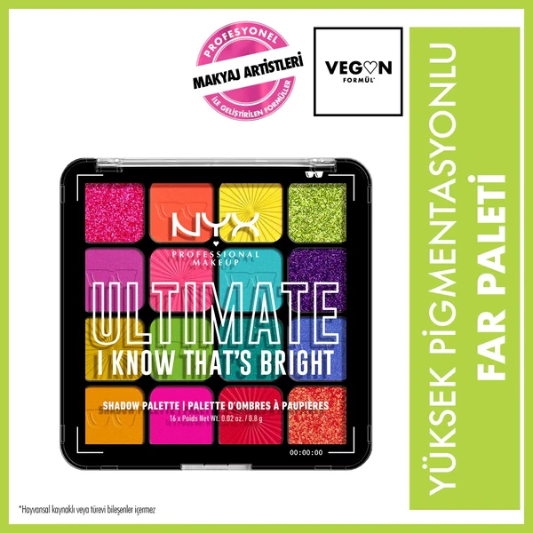 – Product Name: NYX Ultimate Bright Eyeshadow Palette – 16 Pigmented Colors