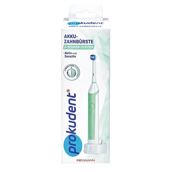 - Included in the package: 1 rechargeable toothbrush, 1 Prokudent brush head, 1 charging base, 1 user manual