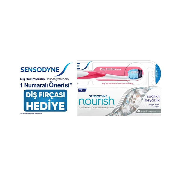 Sensodyne Nourish Healthy Whiteness helps alleviate tooth sensitivity with regular use. It contains biyoaktif mineraller (bioactive minerals) that nourish and strengthen teeth, providing protection against sensitivity. This makes it ideal for those who experience discomfort while consuming hot or cold foods and beverages.