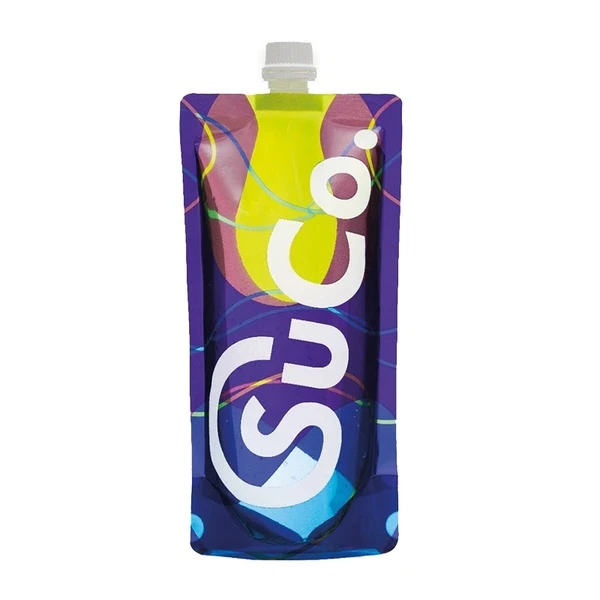 The SuCo foldable water bottle is made from polyethylene (PE), oriented polyamide (OPA), and polyethylene terephthalate (PET). This composition ensures that the water does not come into contact with PET, promoting safe hydration while reducing environmental waste by replacing hundreds of single-use plastic bottles.