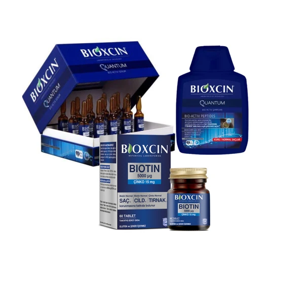 أمبولات بيوكسين كوانتم 15 × 6 مل + شامبو بيوكسين كوانتم 300 مل + مركب البيوتين 60 كبسولة