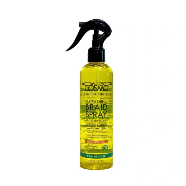بخاخ ملمع لضفائر الشعر من كوزمو سوفت اند شاين, 250 مل هو رذاذ مخصص للشعر مصمم لتعزيز جمال تسريحات الضفائر مع توفير لمعان صحي وطبيعي. هذا المنتج ضروري لأي شخص يتطلع للحفاظ على حيوية ونعومة ضفائره. تم تركيبه بمزيج من مكونات ترطيب الشعر، يعمل هذا البخاخ على ترطيب وفك تشابك وحماية الشعر الضفائر من الجفاف والتكسر.