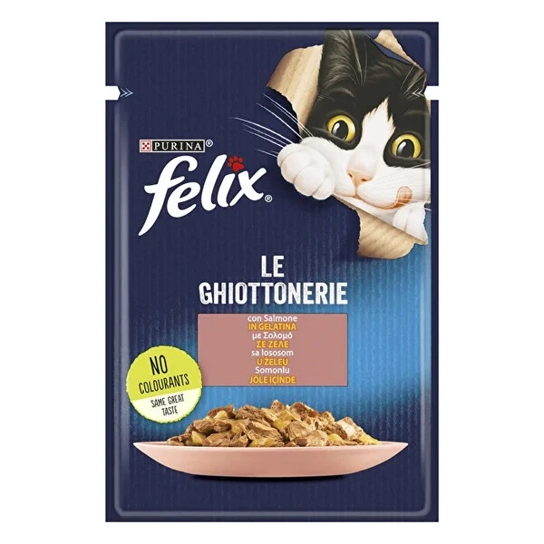 – اسم المنتج: طعام قطط فيليكس 85 غرام – سمك السلمون في الجيلي، مكونات طبيعية