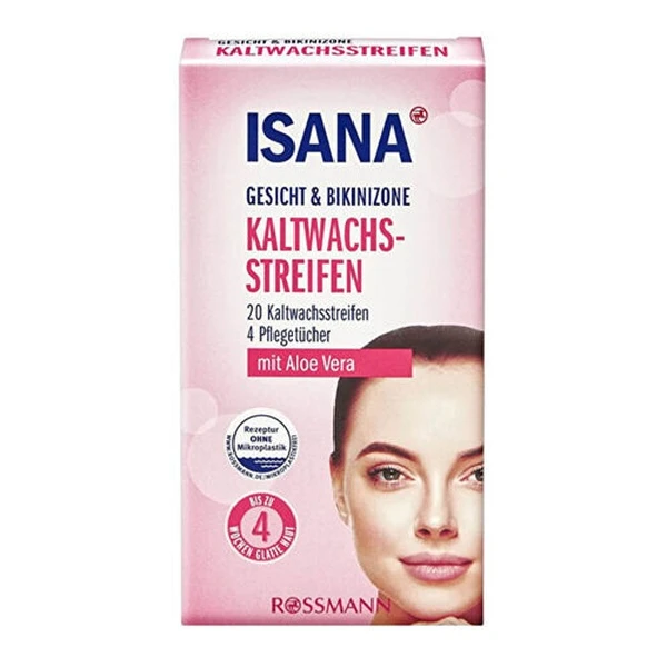 20 قطعة من شرائح الشمع البارد من إيزانا للوجه ومنطقة البكيني + 4 قطع مناديل تنظيف