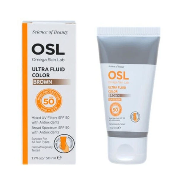 أو إس إل – كريم أوميجا سكين لاب ألترا فلويد كولور واقي من الشمس بعامل حماية 50+ 50 مل – بني