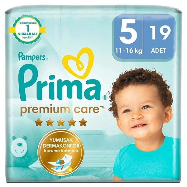 حفاضات بريما بريميوم كير مقاس 5، 19 قطعة