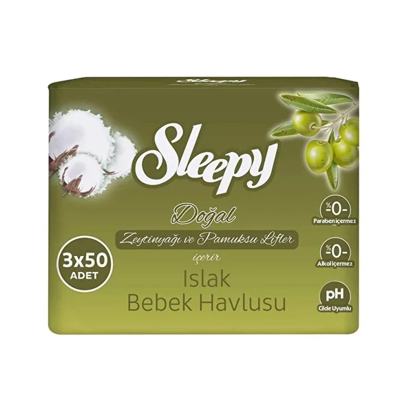 مناشف مبللة للأطفال بزيت الزيتون من سليبي – مضادة للحساسية وناعمة، 3 × 50