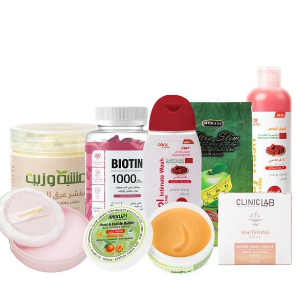 Эта коробка содержит разнообразные средства по уходу за телом, которые работают вместе, чтобы очищать, питать и защищать кожу. Выбор предназначен для решения множества проблем с кожей, обеспечивая целостный подход к уходу за телом.