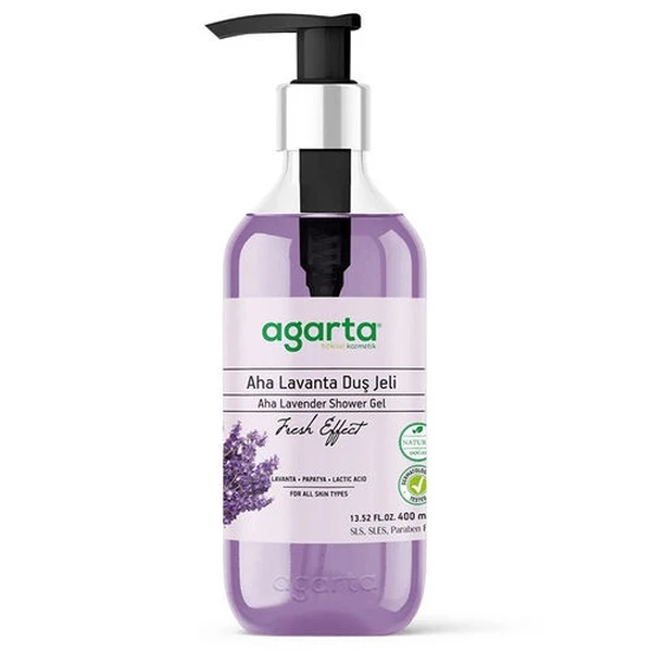 Освежающая формула: Легкая и освежающая формула Геля для душа Агарата Натуральный AHA Лаванда обеспечивает чистое и бодрящее ощущение на коже. Он легко смывается, оставляя кожу свежей без остатка.