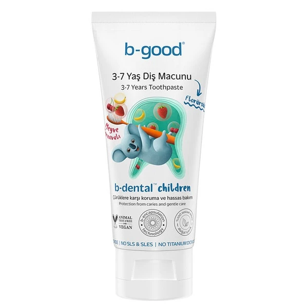 Зубная паста B-good B-dental не содержит фтора, что учитывает опасения некоторых родителей по поводу воздействия фтора на маленьких детей. Это делает её более безопасным вариантом для детей, обеспечивая возможность формирования здоровых привычек чистки зубов без рисков, связанных с проглатыванием фтора.