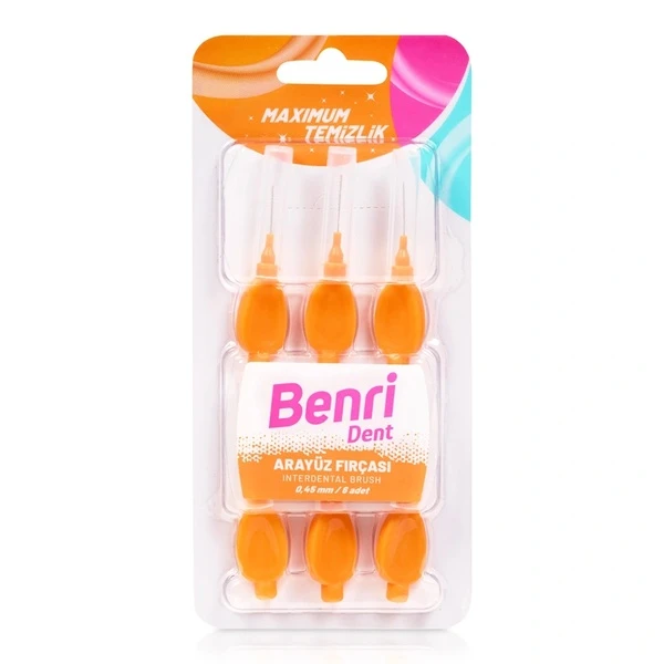 Зубная щетка Benri Dent межзубная имеет размер щетины 0,45 мм, который специально разработан для очистки между зубами и вдоль линии десен. Это помогает удалять остатки пищи и налет из участков, куда щетинки зубной щетки не могут добраться, поддерживая лучшую общую гигиену полости рта.