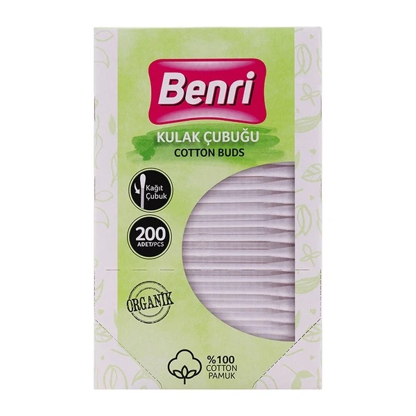 Бамбуковые палочки для чистки ушей из органического хлопка 200 штук от Benri