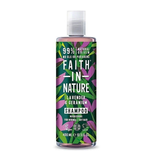 Шампунь для волос с лавандой и геранию от Faith In Nature обеспечивает тщательное, но мягкое очищение, удаляя грязь и примеси, не лишая волосы их натуральных масел. Это особенно полезно для людей с сухой или чувствительной кожей головы.
