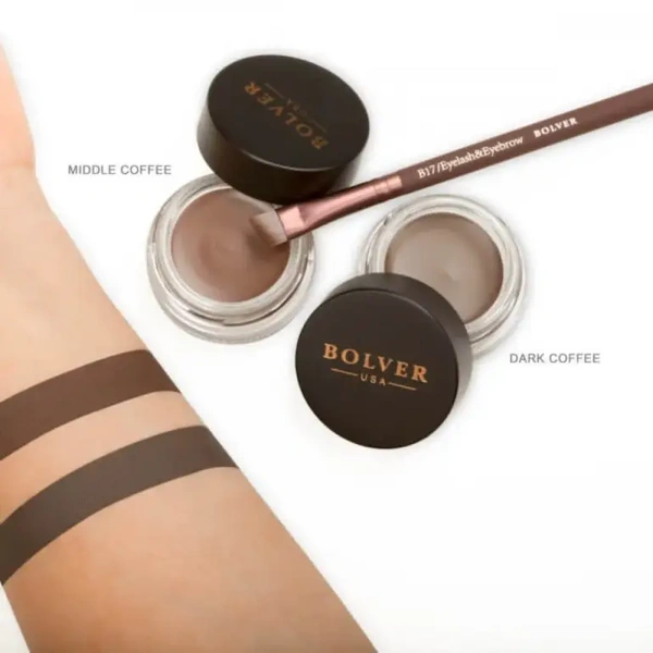 Гель упакован в небольшой круглый контейнер, что делает его удобным для переноски и нанесения. Его удобный дизайн позволяет легко использовать его с кисточкой для бровей, обеспечивая точное нанесение и контроль над желаемой формой бровей.
