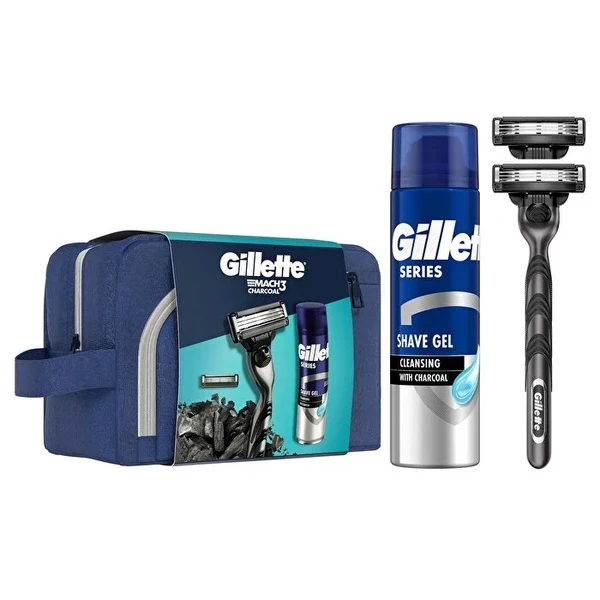 Набор бритвенных принадлежностей Gillette Mach3 с углем и гелем – 200 мл