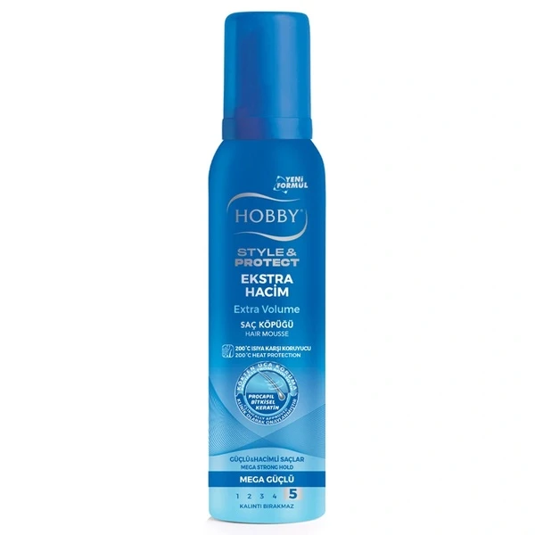 Мусс для волос дополнительного объема Hobby Style & Protect 150 мл – Объем и защита от тепла является премиальным продуктом для укладки волос, который обеспечивает эффективную укладку, защищая волосы от повреждений. Этот мусс клинически доказано предотвращает выпадение волос во время укладки и обеспечивает комплексную защиту от корней до кончиков. Благодаря инновационной формуле, обогащенной Прокапилом и растительным кератином, он не только укладывает волосы, но и гарантирует их здоровье и объем.