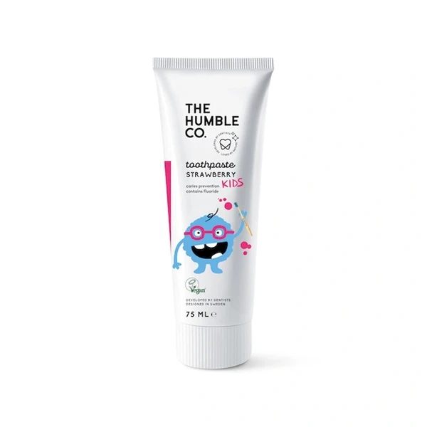 Зубная паста для детей с клубникой 75 мл от Humble Brush – Веганская и натуральная специально разработана для здоровья полости рта детей. Созданная стоматологами, эта паста ставит на первое место благополучие как юных улыбок, так и окружающей среды. Она не содержит глютена и SLS, обеспечивая мягкое, но эффективное очищение, а также является веганской.