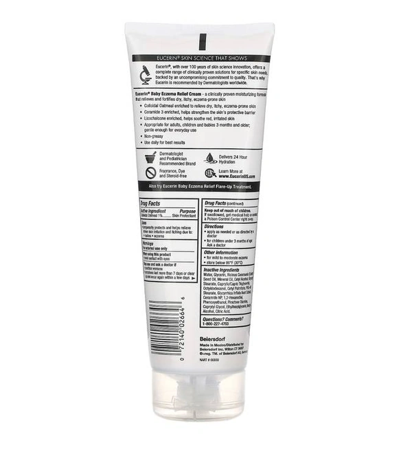Лечение экземы и раздражения для детей без запаха, 226г von Eucerin – это специально разработанное средство для кожи, предназначенное для облегчения раздражения и зуда, связанных с обострениями экземы у маленьких детей. Этот продукт клинически протестирован и рекомендован педиатрическими дерматологами, что делает его надежным выбором для родителей, ищущих эффективное средство для чувствительной кожи своих детей.
