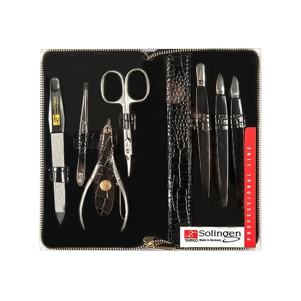 Этот полный набор маникюра охватывает различные потребности в уходе за ногтями, от стрижки и формирования до ухода за кутикулой. Каждый инструмент изготовлен в Золингене, городе, известном своими высококачественными инструментами для ухода, что обеспечивает долговечность и продолжительную работу.