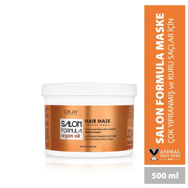 Маска для волос с аргановым маслом Okay Salon Formula – Восстановление и Увлажнение 500мл является специализированным средством, разработанным для восстановления и питания поврежденных волос. Эта маска для волос содержит мощную комбинацию ингредиентов, направленных на восстановление повреждений и улучшение удержания влаги. Она подходит для людей с сильно поврежденными, сухими, тусклыми или химически обработанными волосами, обеспечивая необходимый уход для улучшения здоровья волос.