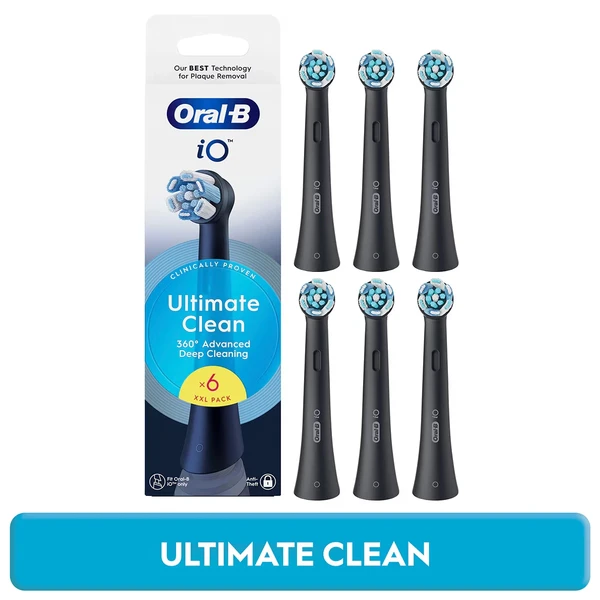 Зубные щетки-насадки Oral-B Io Ultimate Clean разработаны для повышения уровня гигиены полости рта с использованием инновационной технологии iO. Эти насадки имеют плотно упакованные щетинки, которые более эффективно удаляют налет по сравнению с традиционной ручной зубной щеткой, удаляя до 99% налета с первого дня.* Их уникальный изогнутый дизайн обеспечивает оптимальный доступ к каждому зубу, гарантируя комплексную чистку всей полости рта. Стоматологи рекомендуют заменять насадки каждые три месяца для поддержания их эффективности.