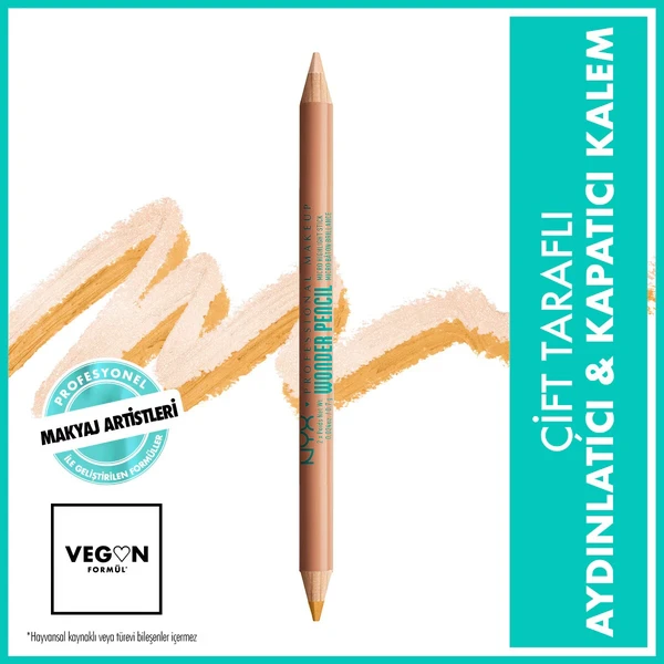 Nyx Wonder Pencil Двусторонний хайлайтер и консилер глубокий — это универсальный инструмент для макияжа, предназначенный для контурирования, маскировки и выделения определенных участков лица. Этот двусторонний карандаш сочетает функции хайлайтера и консилера для безупречного результата. С веганской формулой он предлагает пять гармонирующих пар цветов, подходящих для различных оттенков кожи, что делает его подходящим для широкой аудитории.