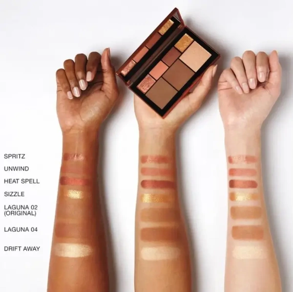 Палитра для лица NARS Лагуна — это универсальный продукт для макияжа, созданный для улучшения цвета лица с помощью различных оттенков, подходящих для разных тонов кожи. Эта палитра тщательно разделена на две секции: одна для светлой и средней кожи, другая для средней и темной кожи. Каждая секция содержит тщательно подобранный набор цветов, которые помогают достичь сияющего бронзового и скульптурного вида.