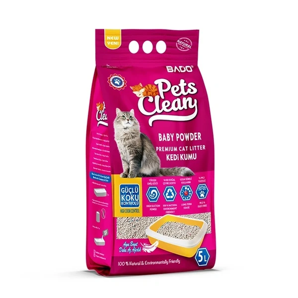 Кошачий наполнитель с ароматом 5 л от Pets Clean – Быстрое слипание и контроль запаха — это высококачественное решение для кошачьего туалета, разработанное для обеспечения отличного контроля запаха, сохраняя при этом чистую среду для вашего пушистого друга. Порошок быстро слипается, что обеспечивает легкость уборки, и оставляет приятный аромат детской присыпки. Сформулированный из натуральной бентонитовой глины, этот наполнитель безопасен для вашей кошки и не содержит вредных веществ, что делает его ответственным выбором для ухода за питомцами.