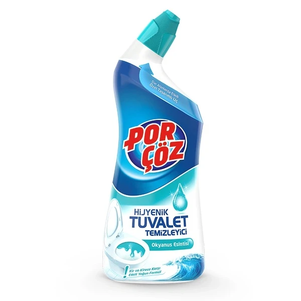Гель для чистки туалетов Porçöz Океанский Бриз – 750 мл, Экстра Сильный, является мощным чистящим средством, специально разработанным для туалетов. Этот продукт эффективно справляется с различными типами загрязнений, включая грязь, известковый налет, ржавчину и желтые пятна, при этом обеспечивая свежий океанский аромат. Его специально разработанный гель гарантирует тщательную чистоту и гигиену, что делает его незаменимым элементом любой процедуры уборки в ванной комнате.