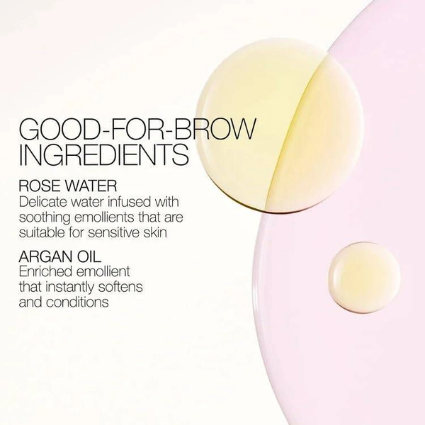 Содержит успокаивающую розовую воду и аргановое масло, гель помогает смягчить и увлажнить волоски бровей. Это питание важно для поддержания здоровья бровей, делая их более полными и здоровыми со временем.