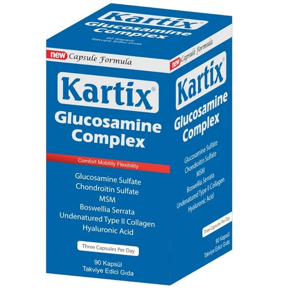 Глюкозаминовый комплекс Kartix содержит глюкозамин сульфат (1500 мг на три капсулы), который необходим для поддержания и восстановления хряща. Он помогает облегчить дискомфорт, связанный с износом суставов, что особенно полезно для тех, кто занимается физической активностью или испытывает возрастные проблемы с суставами.
