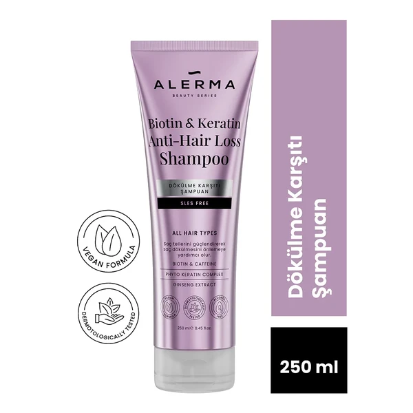 Шампунь Alerma Биотин и Кератин 250 мл – Формула против выпадения волос является специализированным продуктом для ухода за волосами, разработанным для борьбы с выпадением волос. Этот шампунь без сульфатов глубоко питает и увлажняет волосы, помогая укрепить их и снизить ломкость. Сформулированный с использованием необходимых ингредиентов, он подходит для ежедневного использования и эффективно решает распространенные проблемы с волосами.