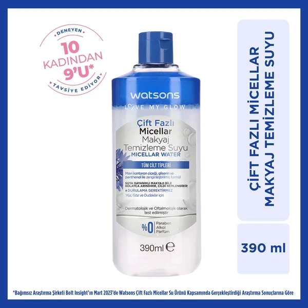 Мицеллярная вода двухфазная Watsons 390 мл — это высокоэффективный продукт для макияжа и ухода за кожей, разработанный для очищения и увлажнения кожи. Эта двухфазная формула, состоящая из масла и воды, эффективно удаляет макияж и загрязнения, не оставляя кожу сухой. Мицеллярная структура мягко притягивает грязь и остатки макияжа, обеспечивая тщательное, но бережное очищение. Этот продукт подходит для ежедневного ухода за кожей и безопасен для всех типов кожи, включая чувствительную.