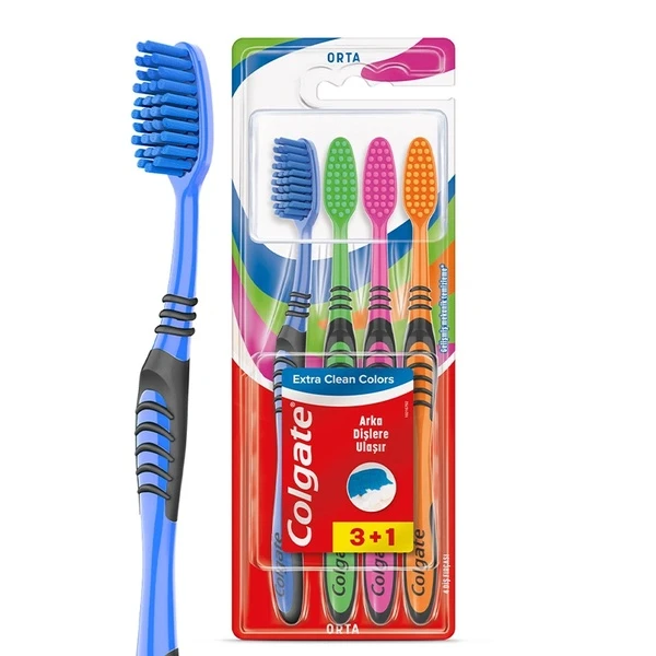 Зубная щетка Colgate Extra Clean Colors с очистителем языка 3+1