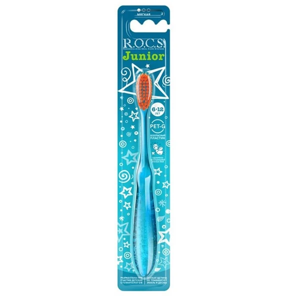 Детская зубная щетка Rocs Junior Soft 6-12 лет — это специально разработанный инструмент для ухода за полостью рта, который помогает поддерживать гигиену полости рта у детей в возрасте от 6 до 12 лет. Эта зубная щетка сочетает в себе функциональность и веселый, привлекательный дизайн, что делает процесс чистки зубов приятным для маленьких детей. Она необходима для формирования эффективных привычек чистки зубов в эти важные годы.