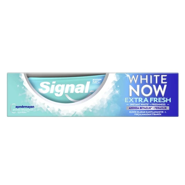 Помимо отбеливания, зубная паста Signal White Now Extra Fresh защищает от кариеса и накопления налета. Регулярное использование помогает поддерживать оптимальное здоровье полости рта, борясь с разрушением зубов и обеспечивая более здоровую полость рта.