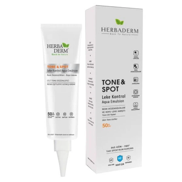 Эмульсия для контроля темных пятен Herbaderm Tone Spot 40 мл – Осветление кожи является специализированным средством по уходу за кожей, разработанным для борьбы с появлением темных пятен на коже. Благодаря своей продвинутой формуле, эта эмульсия не только нацелена на темную пигментацию, но и предлагает комплексную защиту от вредного синего света и УФ-лучей. Ее легкая текстура делает ее подходящей для ежедневного использования, обеспечивая яркость вашей кожи и избавляя от темных пятен, при этом обеспечивая необходимое увлажнение.