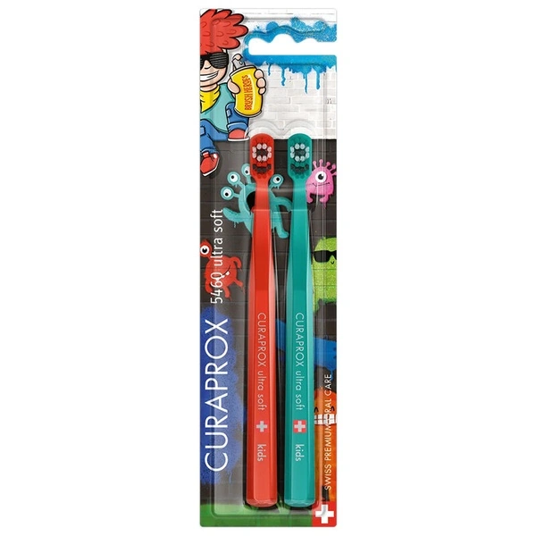 Детская зубная щетка Curaprox Ультра мягкая Граффити 2 шт. специально разработана для ухода за полостью рта маленьких детей. Этот набор включает две зубные щетки, каждая из которых имеет яркий граффити-дизайн, что делает процесс чистки зубов увлекательным. Разработанные для детей от 3 лет, эти ультра мягкие зубные щетки обеспечивают бережную чистку, гарантируя, что нежные зубы и десны детей не пострадают, при этом эффективно удаляя налет.