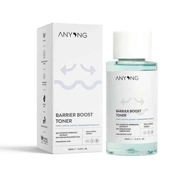 Тоник Anyong Barrier Boost 200 мл с женьшенем и гиалуроновой кислотой — это тщательно разработанный тоник, предназначенный для защиты и освежения кожи от ежедневных стрессоров. Обогащенный экстрактом женьшеня и ферментированным зеленым чаем, этот тоник направлен на revitalизацию кожи, обеспечивая ей необходимую влагу. Сочетание успокаивающих эффектов бета-глюкана и гиалуроновых кислот различных размеров работает вместе, чтобы обеспечить глубокое увлажнение и укрепить барьер кожи, способствуя сбалансированному, сияющему и мягкому цвету лица.
