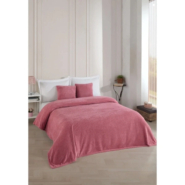 Чехол и плед для двуспальной кровати Wondel Пыльная роза 200×230 см